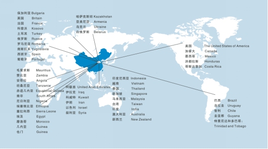 我司設(shè)備已銷售80多個國家與地區(qū),詳細請參見我們的銷售區(qū)域圖。