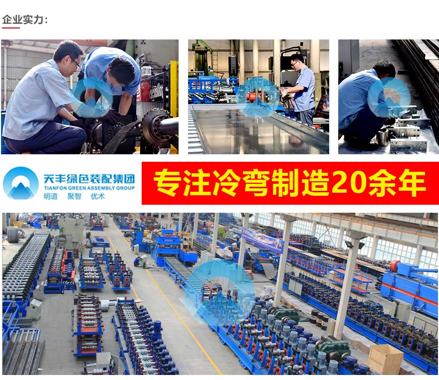 2 TF70-320-921樓承板/屋面板數控高速冷彎生產線, 成品生產速度可達40米/分鐘(含切斷),通過快換單元可生產多種板型。PLC集中控制整線的上料、開卷機、拉刀、成型、伺服飛剪、碼垛、輸出,人機界面操控,一個人即可操作整線,可一次設定多組制件數據任務,自動化生產,配置有遙控器、安全光幕等整體安防系統(tǒng),通過歐盟安全標準CE認證。